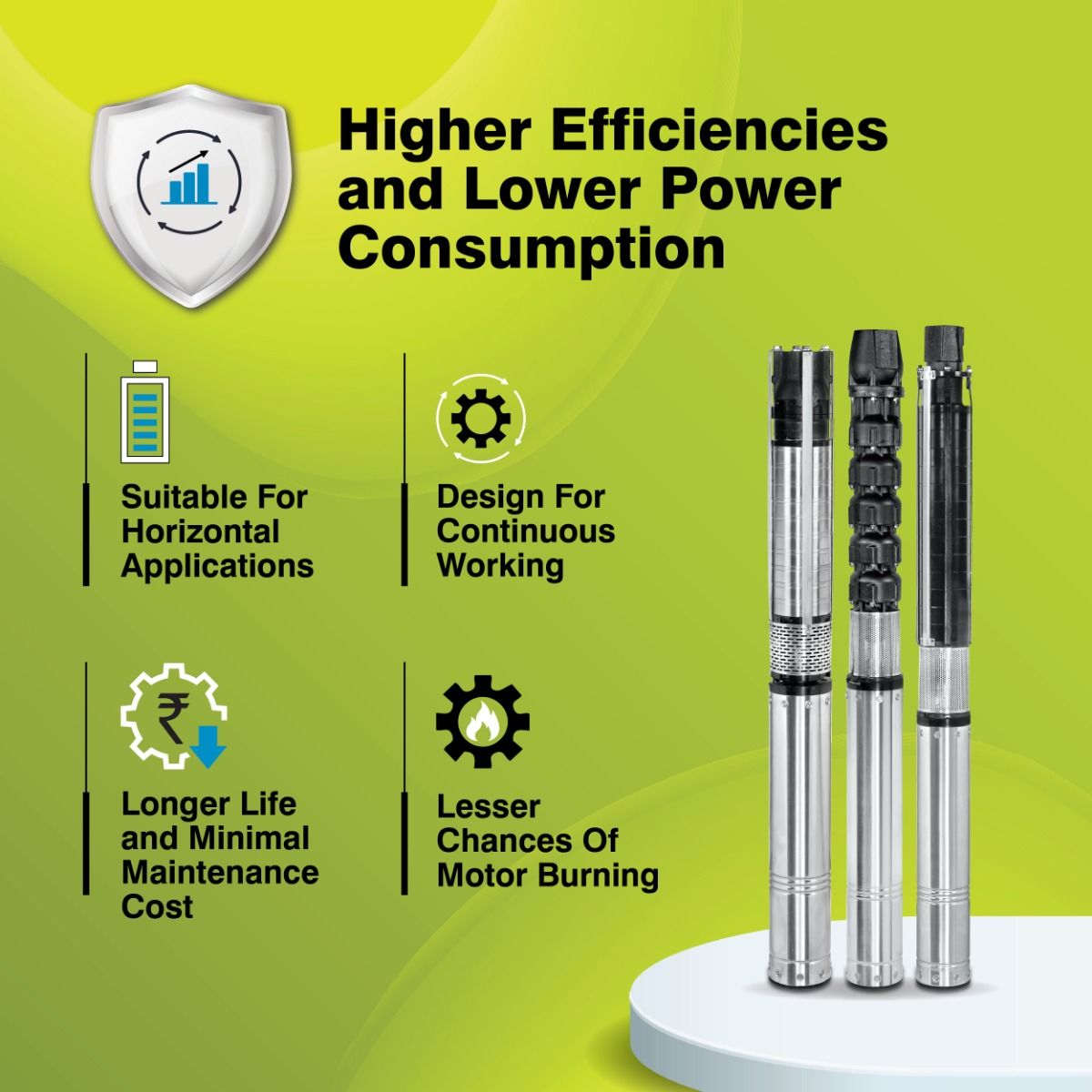 Borewell Submersible Pump, KU6i HHN 300-1010, 10 HP, Three Phase, 415 Volts, Size 65mm